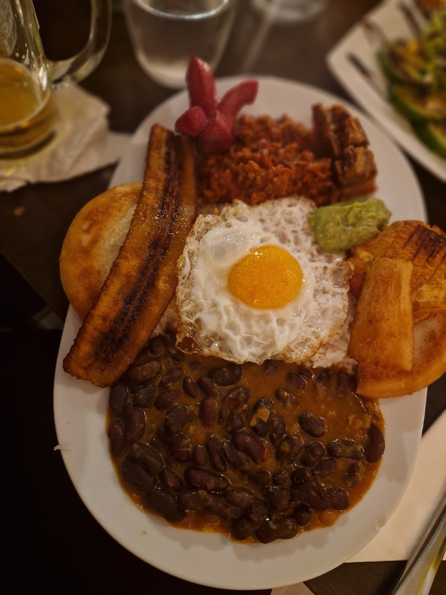 The menu at Café De Colombia is a journey through Colombian cuisine. From savory dishes like arepas and empanadas to the heartier bandeja paisa, there's something for everyone. One standout is their Ajiaco, a traditional Colombian soup made with chicken, potatoes, and corn, which is rich in flavor and perfect for the colder months. For those looking to try a bit of everything, the bandeja paisa is a must-try-packed with rice, beans, sausage, plantain, and more, it's a true feast for the senses.